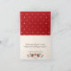 Önska dina gäster på bröllopet, familj och vänner en glad högtid och God Jul med detta eleganta och vackra tackkort med en formell, vintage och antik gammaldags känsla. Frostiga kottar, akvarell- och målad look rosa, röda och vita julrosor och blommor, snöiga ekollon och järnekullar bildar en vacker vinterkrans. Gulddekorer och guldlite hjärta och en röd bandbåge fullbordar den festliga looken på detta vintertema kort. Den övre insidan av kortet har ett rött och vitt prickigt hjärtmönster. Lägg till din signatur och speciella meddelande på insidan eller ta bort all text för att lämna utrymmena tomma om du vill skriva varje kort för hand. Konst © Chrissy H.