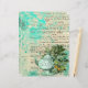 Vacker vintage collage med mintfärgad tekannateckning med löv och grön fjäril på pastellblå slitna tillfälliga föremål bakgrund