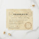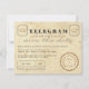 Den här vintagen inspirerade telegram Spara datumkortet är en roligt och ett unikt sätt att tillkännage din stora dag! Visas med ljusbrunt, mörk brunt och svart bläck. Den bildade sepia-/tebakgrunden kommer att tryckas på papperets yta till ge om utformningen och åldrasens utseende. Anpassa kortet genom att skriva ut namn, datum och plats för bröllop på framsidan, och se till att inkludera all reseinformation och bröllop webbplats på baksidan. Om du vill justera färg klickar du på orangen "anpassa det" ovan. Fler teckensnitt färg visas på högerna.