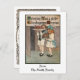 Charming Thanksgiving illustration med två viktoriska barn i Söndag bäst, pojken som håller en färsk bakad kalkon på en platter medan flickan bär en klumppudding. Hälsning i den gamla engelska texten. Grund på kortet är anpassade.