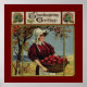 Den här Thanksgivingen av vintagen är av en ung kolonialflicka i en röd klänning med en vit plattor och en benmärg. Hon står framför ett träd med berg långt i bakgrunden. Hon bär med sig en fullt mogna röda äpplen från basket till köket för att stötta lite färskt äpple paj. Över henne flankeras ord Thanksgiving Hälsning av kalkoner på båda sidor. Det är en vacker perfekt för vintagens design för alla dina inbjudningar, kort, aproner och mycket mer i Helgdag. Matcha det här poster med andra produkter som har den här vintagen.