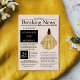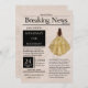 Vacker, vintage-inspirerad tidning, "Breaking News", specialutgåva med anpassningsbara mallar med en flicka i formell klänning. Hennes vackra, akvarell-klänning är i guld färg med falska glitter accenter.