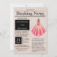 Vacker, vintage-inspirerad tidning, "Breaking News", specialutgåva med anpassningsbara mallar med en flicka i formell klänning. Hennes vackra, akvarell-klänning är laxrosa med falska glitteraccenter.