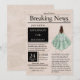 Vacker tidning i vintage-stil, "Breaking News", specialutgåva med anpassningsbara mallar med en flicka i formell klänning. Hennes vackra akvarellklänning är en ljusgrön, verde claro-färg med falska glitteraccenter.