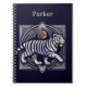 Vintage Tiger Navy Blått Anteckningsblock en djärv randig tiger i en vintageinspirerad geometrisk design mot en djupblå bakgrund. Med sitt starka Art Deco-inflytande, rena linjer och slående grafiska stil, har denna iögonfallande design en sofistikerad look som blandar vilda djur konst med klassisk ornamental symmetri. Det gör en bra present för tiger-älskare, vilda djur-fans, stora katt-entusiaster och alla som njuter av vintage-djur konstverk med en dramatisk, stilfull känsla.