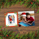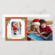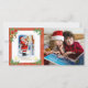 Bedårande, vintage, Tomte med röd ram, grön järnek, julgransljus och gyllene klockor, med ett anpassningsbart foto till höger. Din hälsningstextmall finns på baksidan.