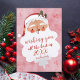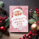 Skicka varma välgångsönskningar med detta söta jultidskort med Cute Santa som visar en charmig illustrerad tomte, mjuk rosa vattenfärg bakgrund och anpassningsbar text för året och familjenamn.
