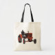 Denna konstruktion är en silhuett som kör en vintage traktor. Den gamla traktorn är en rödbrun färg. Vintagens traktorkonstruktion ser underbar ut