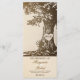 vintage bruna bröllopsprogram med gammal ekformad träd och kärlek hjärta initialer.