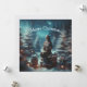 Vintage traditionellt julkort i julgran skog flicka som håller en present