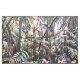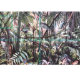 Denna vackra vintage med icke-upprepande tropiska textilier skapades med en målning som har ett tätt terräng av handflatan träd och vinodlingar i en djungel med dammig rosa himlar i bakgrunden.