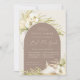 Den tropiska chicens bat mitzvah inbjudningar i en allrande palett i neutralt färg har ett centralt bågverk i inslag med ceremoni och firande eller party, accentuerat med vattenfärgsfronder för blek grönt handflatan, bukblad för öar, vita orkidéer, boho-torkade botaniker och pampasgräs.