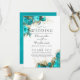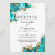 Turkos - chic av teal och guld, vattenfärg ro bröllopsprogram fläkt med elegant med handskriftstypografi.