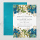Turkos - blommor av teal- och guld shabby-chic inbjudningskort för möhippan med elfenbensvita accenter.