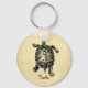 Nyckelkedja för roligt med vintage-sköldpaddsillustration på antik papper bakgrund