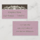 Två tredjedelar av grund är en mjuk rosa, den översta en tredjedel av riken choklad brun, båda med ett linjärt utseende. En gräddsnurrande mönster på toppen gör att du är klar. Anpassadet ser ut att vara inpräglat.Kortets baksida har samma rosa.
