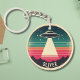 Den här nyckelkedjan för personlig som fångar upp öga har en utformning av tecknaden för vintage med en gnutta grymhet. Scenen skildrar en UFO-våning genom en bedövande vriden himlar. Den övre delen av himlar är en djup, mystisk blå, prickad med dubbla stjärnor. När din ögon färdas ner övergår himlar till ett eldkrött, vilket kastar en varm glöd på det silhuetterade landskapet nedanför. Konstruktionens högdager är UFO, dess ljusa ljus som belyser det underliggande landet i en vintage stil. Den här unika rundformgivningen kan vara personlig, skapar den som perfekt eller ett speciellt tillägg till din egen nyckelkedjesamling.