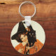 Vintage Vackert Witch med Cute Black Cat Nyckelring