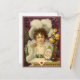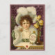 Ett vykort från 1890-talets reklamfilm poster en söt tittar ung kvinna som bär hatt, vita handskar och pärlor, som sitter i bord och som är vas i ro. Efter retuschering håller hon en skylt med ord Valentine Hälsning.