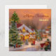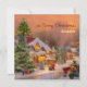 Vintage Vattenfärg Detaljerad Julby Semesterkort.