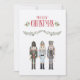 En klassisk helgdag med tre handmålade vattenfärgsnötskal i traditionella uniformer, inramad med festive holly och en greenery garland. Den djärva röda God jul-typografin och vintage-inspirerat struktur ger en tidlös helgdag.