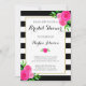 Den här vackra, klassbara designen har hand om färgblommor i rosa mot en högkontrast av svart och vitt rand. I mitten finns ett vitt område med guld-kant som innehåller anpassadet för din speciella dag i populär, elegant-typografi.