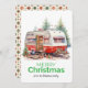 Den här julkortet med vit vattenfärg har en charmerande vintage-videokamera som är försedd med festdetaljer. Den vita kameran med röda accenter ligger i en snöskog omgiven av högt, snö-dammigt gräs träd. En julkrans dekorerar dörren, medan ett mysigt bord med ett fritt trasa och utspridt presenter slutför festscenen. Meddelandet "GOD JUL" i grönten ger en trevlig beröring, personlig med din familj namn nedan. Den här designen fångar på ett vackert sätt den nostalgiska helgdag värme och charm.