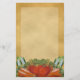 Stationär med vintage av kejsargrönsaker med tomater, morötter och maj på en faux parchment. Klicka på Anpassa för att lägga till ditt namn eller meddelande