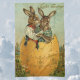 Bild av vintagen Viktorian Påsk Hälsning helgdag. En fånig, rolig och humoristisk scen med två romantiska kaniner som kramar inuti ett gigantiskt, dekorerat färgad Påskägg i en trädgård. En kärlek och romantik-design med en pojke och en tjej.