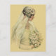 Vintage illustration Viktoriansk bröllopsporträtt design med bruden i profil. Den vackra bruden är i sin bröllopsklänning med slöja och håller en brudbukett av vita blommor.