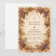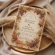 En romantisk vinodlingsinspirerad design inramad av rika druvklasar och hösttonade blad, som fångar värmen och elegansen i en fest i den toskanska landsbygden. De intrikata botaniska detaljerna och den mjuka vintagepaletten skapar en förfinad men inbjudande atmosfär, perfekt för vinälskare och destination-style bröllop. Med sin tidlösa komposition och gammaldags charm ger denna design en känsla av intimitet, överflöd och tyst lyx till din speciella dag.