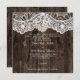 Vintage vit snöre på brunträ bröllop inbjudningar