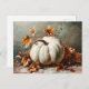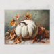 Vita Pumpkin Painting-vykortet för Vintage fångar höstens innersta väsen med en vackert utförlig vit pumpa mot en strålande bakgrund. De mjuka, muterade tonerna och vintage stil i teckningen gör detta vykort till ett charmerande biet för att skicka säsong hälsning eller lägga till en liten bit av lantmäterielegans till din korrespondens.