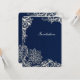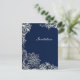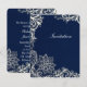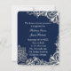 vintage vitt spetsmönster marinblått bröllop inbjudningar