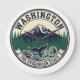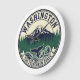 Fira den robusta skönheten i Pacific Northwest med denna fantastiska cirkulära emblem. Med den ikoniska snötäckta toppen av Mt. Rainier som reser sig över en frodig städsegrön skog, fångar denna design perfekt andan i The Evergreen State