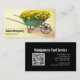 Vilken underbar utformning av ett yrke som är knutet till landskapsvård, arbete, förskoleverksamhet eller andra trädgårdsrelaterade arbeten. Fotografiet av en rostig vintage i grönt som är fylld med gult i blomning Marigolds är det som är längst fram i affärskortet. Fyll i fälten Mallen med din information, ta bort all text eller klicka på anpassa för att välja ett teckensnitt stil, storlekt och färg som du vill ha. Byt ut QR-koden på baksidan mot din. Gör QR-kodlänken till att skicka kunder till din webbplats, foton, recensioner eller någon annan sida.