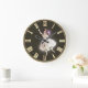 En snygg väggklocka har en söt vintage som illustrerar en mörk i vit klänning med lila-färgad vingar, roman numerisk klocka ansikte på mörkens bakgrund.
