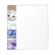 Anteckningsblock med en flytande vit kattunge! Den blåögda kattungen sitter i en blå skål med rosa blommor. En lila flödad filt är inkapslad framför. En fantastisk gåva till kattälskare och Viktorianska konstentusiaster!