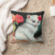 Pillow med en vit kattunge. När kattungen svälter med stort blått ögon, så förskönar röda blommor öron. En vas i röd ros ligger bredvid den vita kattungen. En underbar gåva till kattälskare och Viktorianska konstentusiaster!