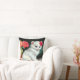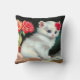 Vintage White Kitten Illustration med Red Flowers Kudde