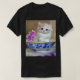 T-Shirt med en flytande vit kattunge! Den blåögda kattungen sitter i en blå skål med rosa blommor. En lila flödad filt är inkapslad framför. En fantastisk gåva till kattälskare och Viktorianska konstentusiaster!