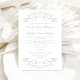 Dekorativa snurrar och blomstrar ram den här elegantens vintage inspirerade bröllopsinbjudan. Vita och silver grått färg. Anpassa anpassningsbarna till ceremonin och mottagningen i giftermål.