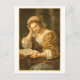 An antique etching depicting a woman reading, colorized with the help of AI.