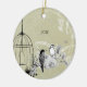 Vintage Woodpeckers & Bird Cage on Damask Julgransprydnad Keramik