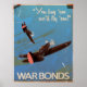 Vintage WW2 klassisk resaffisch - Original affisch för krigsobligationer med stridsflygplan från andra världskriget. Semesterresaaffisch för krigsobligationer.