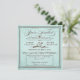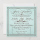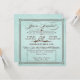 Denna vackra, bleka havsisblå fyrkantiga bröllopsreceptionsinbjudan, med chokladbrun text har en gammaldags känsla med gammaldags bokstavsdesign, inklusive utarbetade skrivstilselement, ett dekorativt band, stjärnor och ett virvlande et-tecken. Den fina inbjudan är inspirerad av både vintage design och stilrena affischer. Texten lyder: "Du är inbjuden till bröllopsreceptionen för [anpassningsbart namn] & [anpassningsbart namn] [anpassningsbart datum] [anpassningsbar tid]. Vänligen anslut dig till oss för en oförglömlig firande". Anpassa inbjudan ytterligare med mottagningsinformationen och adressen, i rutan med prickig kant.