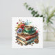 Tom kort. En hög med vintageböcker, vackra blommor och en kopp varmt kaffe i en antik tekopp.