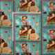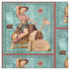 Denna är en vintagecowgirlsitta på en trähäst. Jag har bytt ut den original- bakgrunden med en wood staketbakgrund för bekymrad turkos. Det finns också 2 små gränser runt om kanterna.