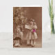 vintageflicka med dockan på jul helgkort