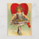 Vintageflicka med hjärtor vykort